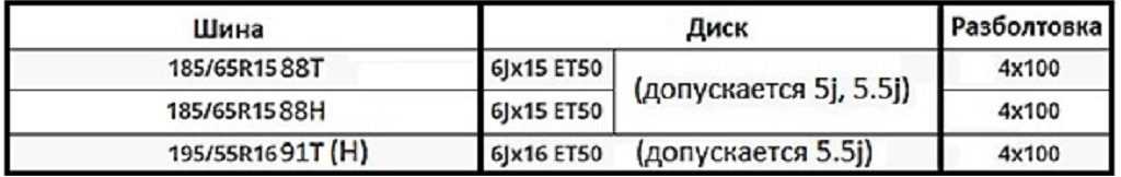 Относительно соответствия штатных и допустимых АвтоВАЗом покрышек и дисков, то эта информация представлена в табличном исполнении: