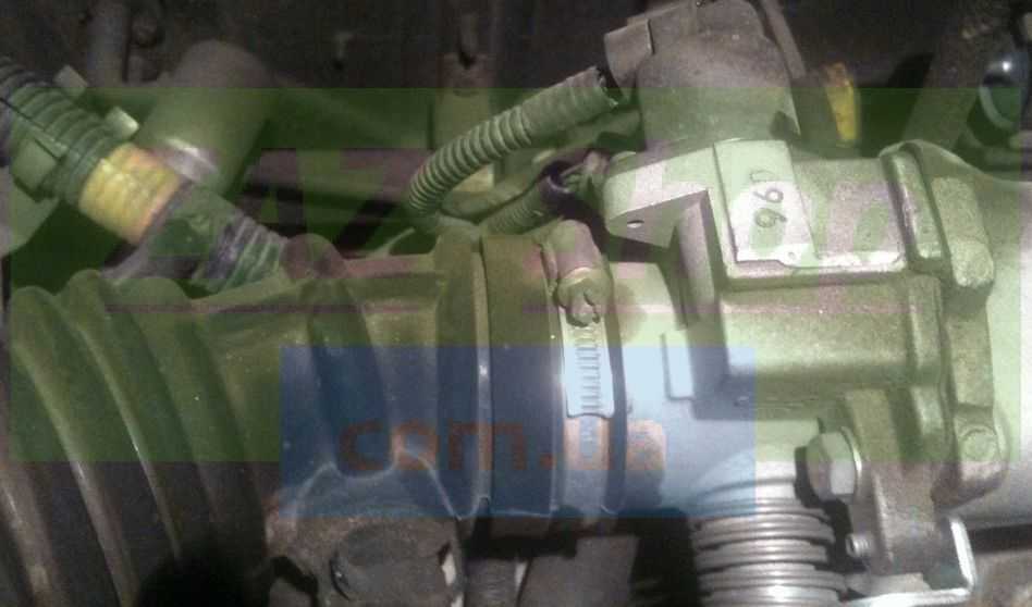 - Ослабляем хомут на гофрированном воздуховоде, который соединяет корпус воздушного фильтра и дроссельную заслонку. Хомут зафиксирован винтовым зажимом, поэтому мастеру потребуется помощь крестовой отвертки.