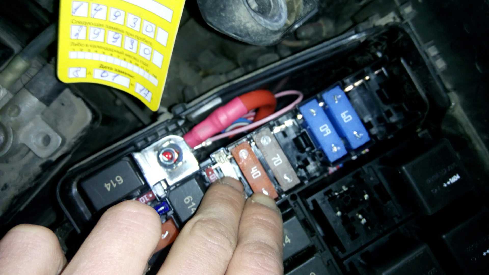 Данная операция несложна и не требует от исполнителя высокого уровня профессионализма. Цель действия – установить в салоне выключатель на разрыв питания к упомянутому выше предохранителю. На панели приборов внизу слева, между регулятором положения зеркал и корректором фар имеется гнездо с заглушкой, вполне пригодное под установку кнопки (по характеристикам подходит под номером 251450002R).