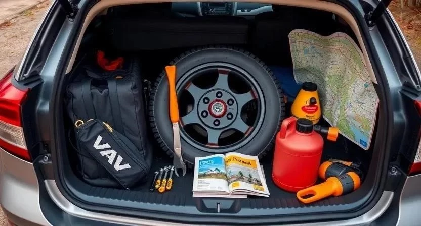 - Взять с собой запасное колесо, домкрат и инструменты: Это поможет вам справиться с небольшими поломками в дороге.