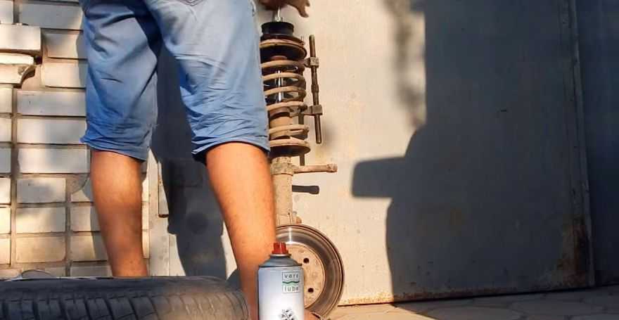 - Открутите гайку, которая предназначена для крепления детали сверху к кузову автомобиля. После этого, автомобиль необходимо поднять и снять колесо. Возьмите щетку по металлу и зачистите место крепления стойки к поворотному кулаку и обработайте с помощью WD-40. Теперь достаньте шплинты с помощью круглых пассатижей и съемником выдавите рулевой наконечник.