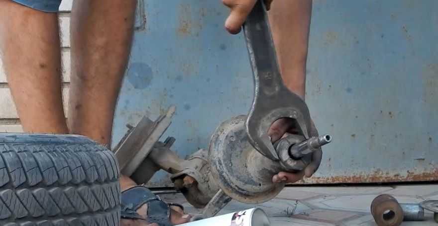 Ключом «на 30» срываем ступичную гайку.