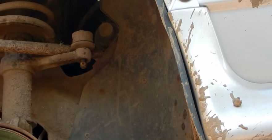 Демонтируем заглушку на металлическом брызговике кузова, чтобы добраться до штока.
