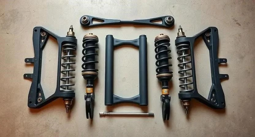 - Ходовая часть: амортизаторы, пружины, рычаги, шаровые опоры, рулевая рейка.