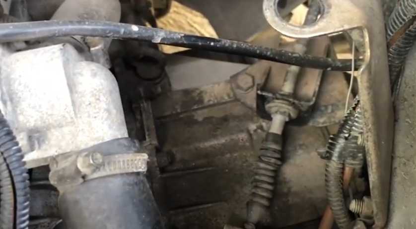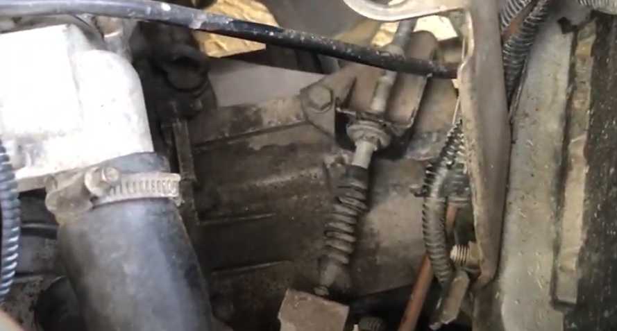 Тросик сцепления приведен на рычаг вилки выключения сцепления.