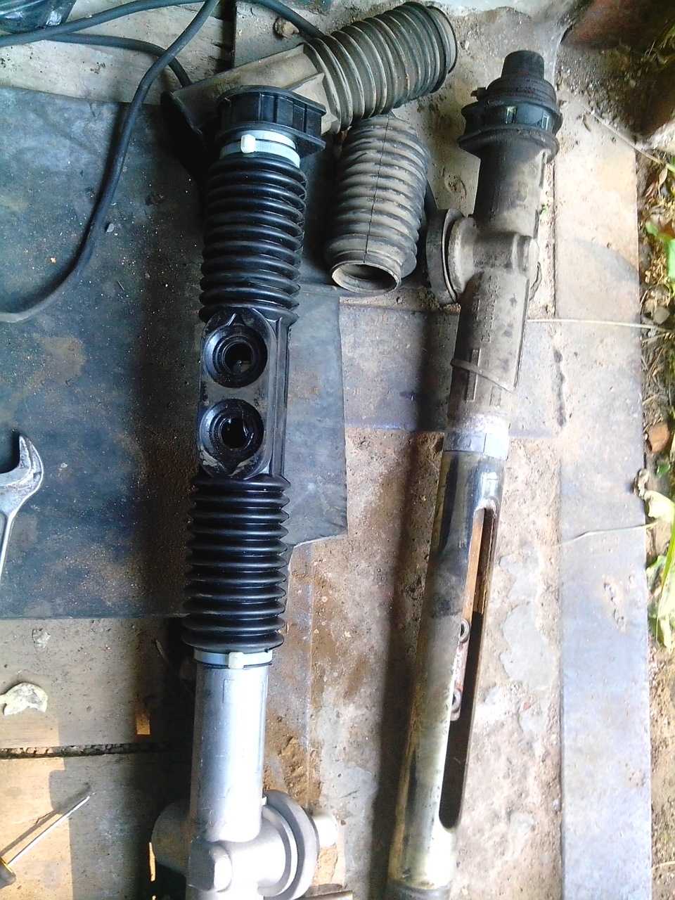Началось все со стуков в рейке. Думаю ну подтяну и все пройдет, а не тут то было. Подтягивать больше было некуда, да еще и пыльник порвался (когда черт его знает). Было принято решение купить новую рейку.