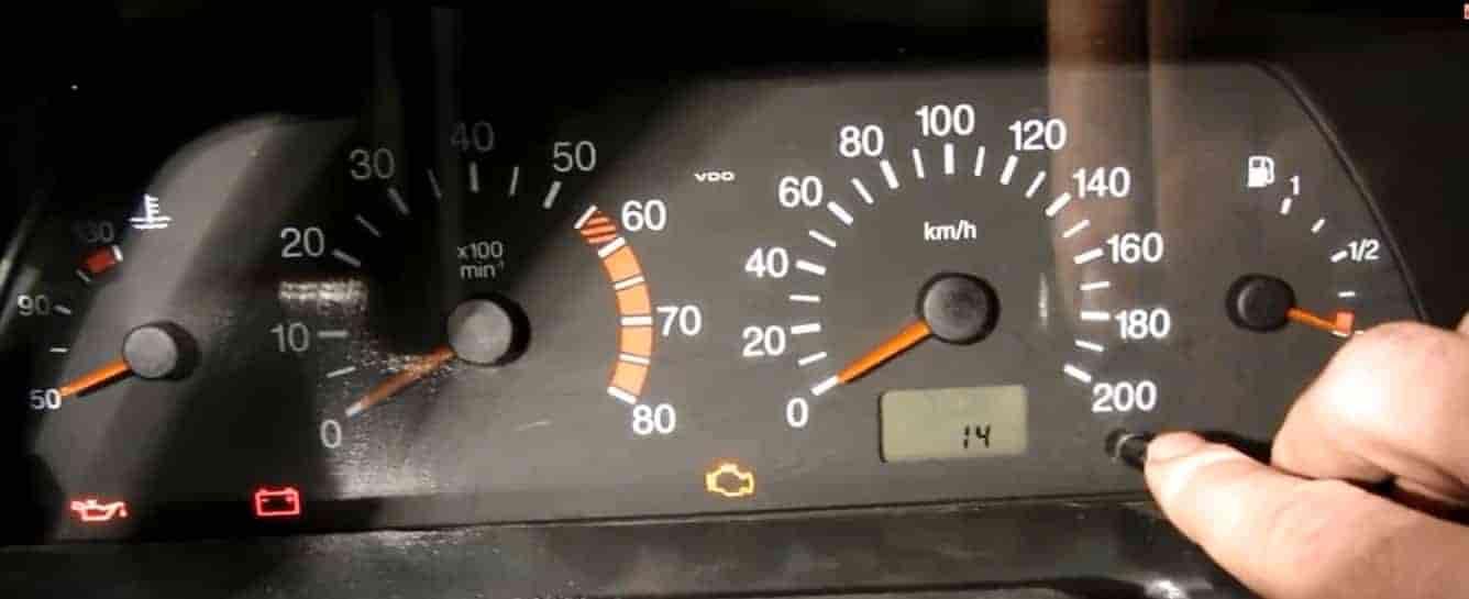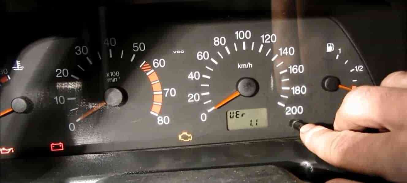 Если нет под рукой сканера или ноутбука, то можно провести мини-диагностику. Для этого нужно зажать кнопку одометра (находится на приборной панели). Одновременно с этим включается зажигание. После чего кнопка отпускается. Стрелки приборов при этом начинают скакать. Далее однократно нажимается на одометр. На дисплее покажется номер прошивки. Следует еще раз зажать и отпустить кнопку.