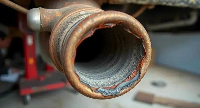 - Прогар глушителя: Коррозия металла, особенно в местах сварки.
