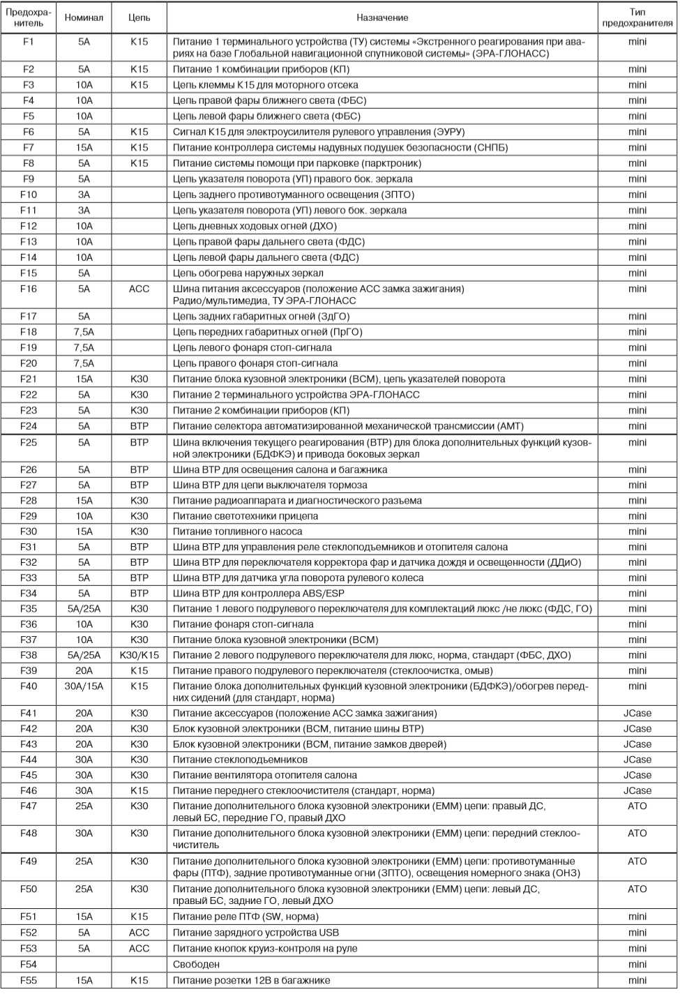 Таблица предохранителей Примечание: в зависимости от комплектации некоторые элементы могут отсутствовать.