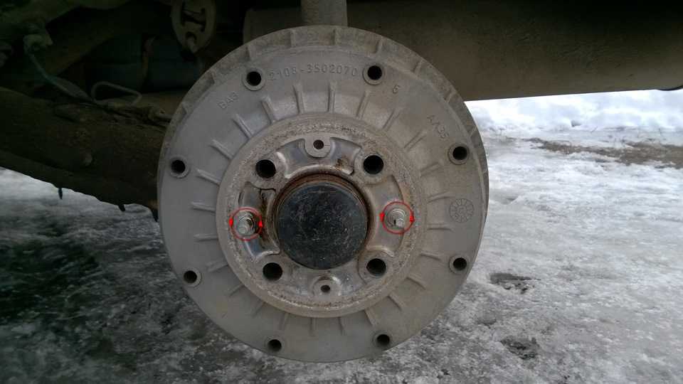 Здесь отворачиваем два фиксатора против часовой стрелки придерживая тормозной барабан рукой