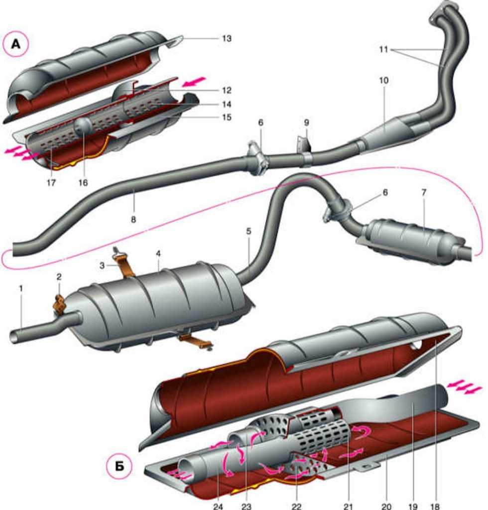 Схематичное устройство выхлопной системы на ВАЗ 2114/2115