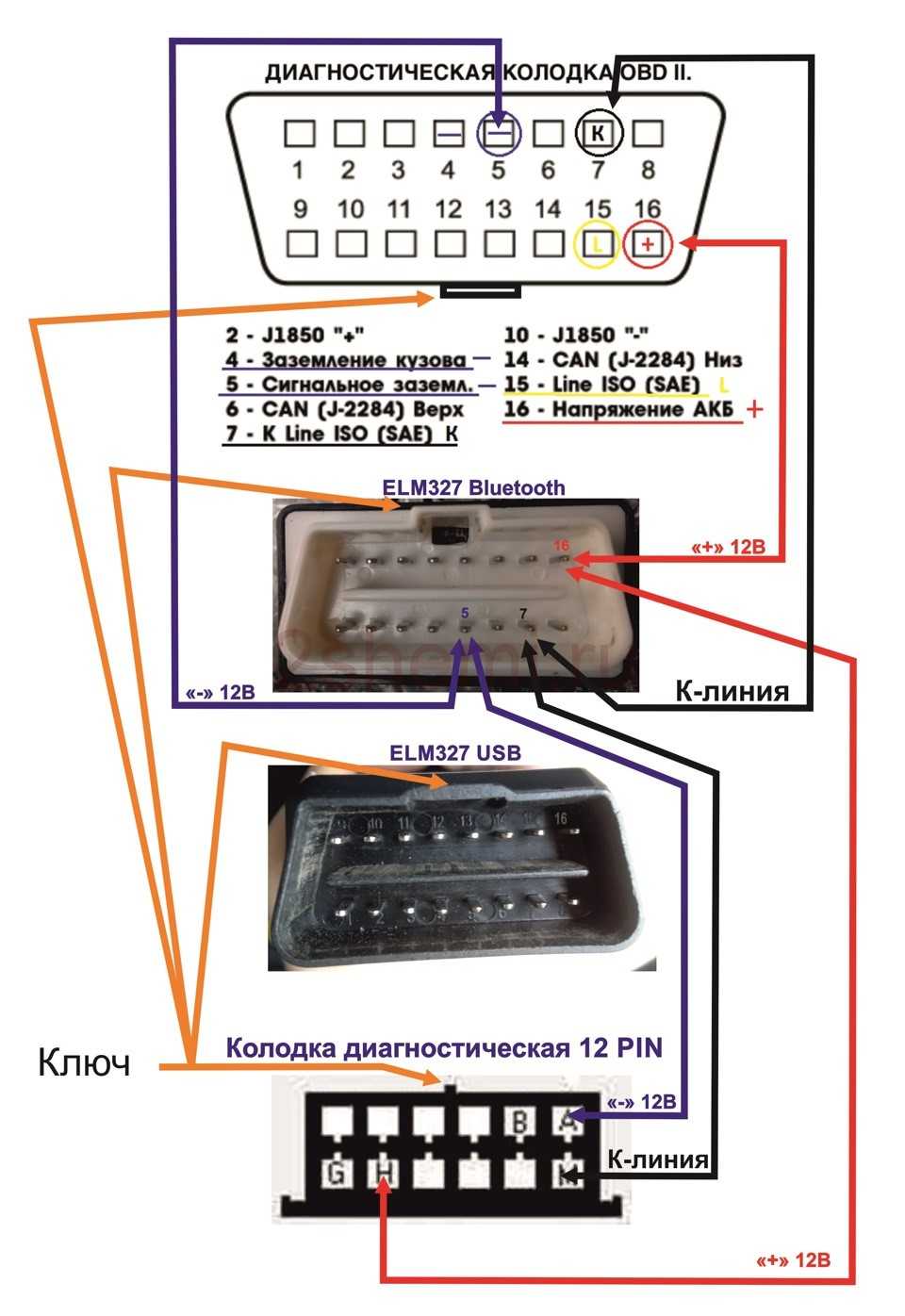 Контакты 4, 5, 7, 15, 16 — ISO 9141-2.