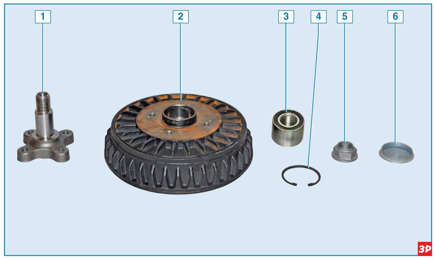 Подшипники задних колес двухрядные. Роль ступицы заднего колеса выполняет тормозной барабан, в отверстии которого с натягом установлено наружное кольцо подшипника.