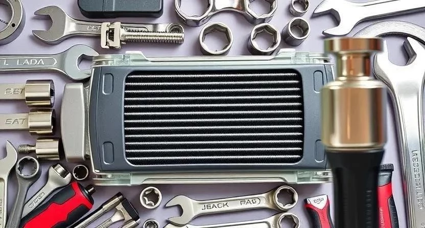 Для замены маслоохладителя нам понадобится не так много инструментов. Я всегда стараюсь иметь под рукой полный набор, чтобы не отвлекаться в процессе работы. Обязательно нужен ключ для откручивания трубок маслоохладителя, набор головок, отвертки, емкость для слива масла, а также новые прокладки и герметик. Не забудьте про новый маслоохладитель, артикул которого зависит от модели вашего автомобиля. Я обычно заказываю запчасти онлайн, так выходит выгоднее.